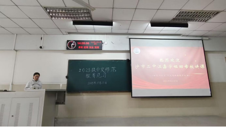 (通讯员:罗望枝)为助力2023级中文师范生完成从“课桌”到“讲台”的角色转换,我们于2025年10月27日在12教102教室举办了首场教育见习讲座。本次活动特邀沙市二中优秀教师汪鑫老师作题为《从课桌到讲台:见习“心”攻略》的分享,学院周霜老师主持,23级中文师范专业全体学生参与。