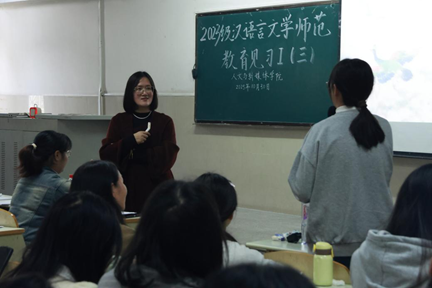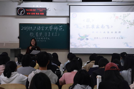 (通讯员 李淼、刘思雨)为提升中文师范专业学生的经典课文教学能力,夯实教育教学素养,2025年10月30日,我们在12教102教室举办教育见习示范课活动。活动特邀沙市第七中学高二语文备课组长洪玉梅老师主讲,周霜、张丽、章芳等老师参与,2023级中文师范专业全体学生参加学习。