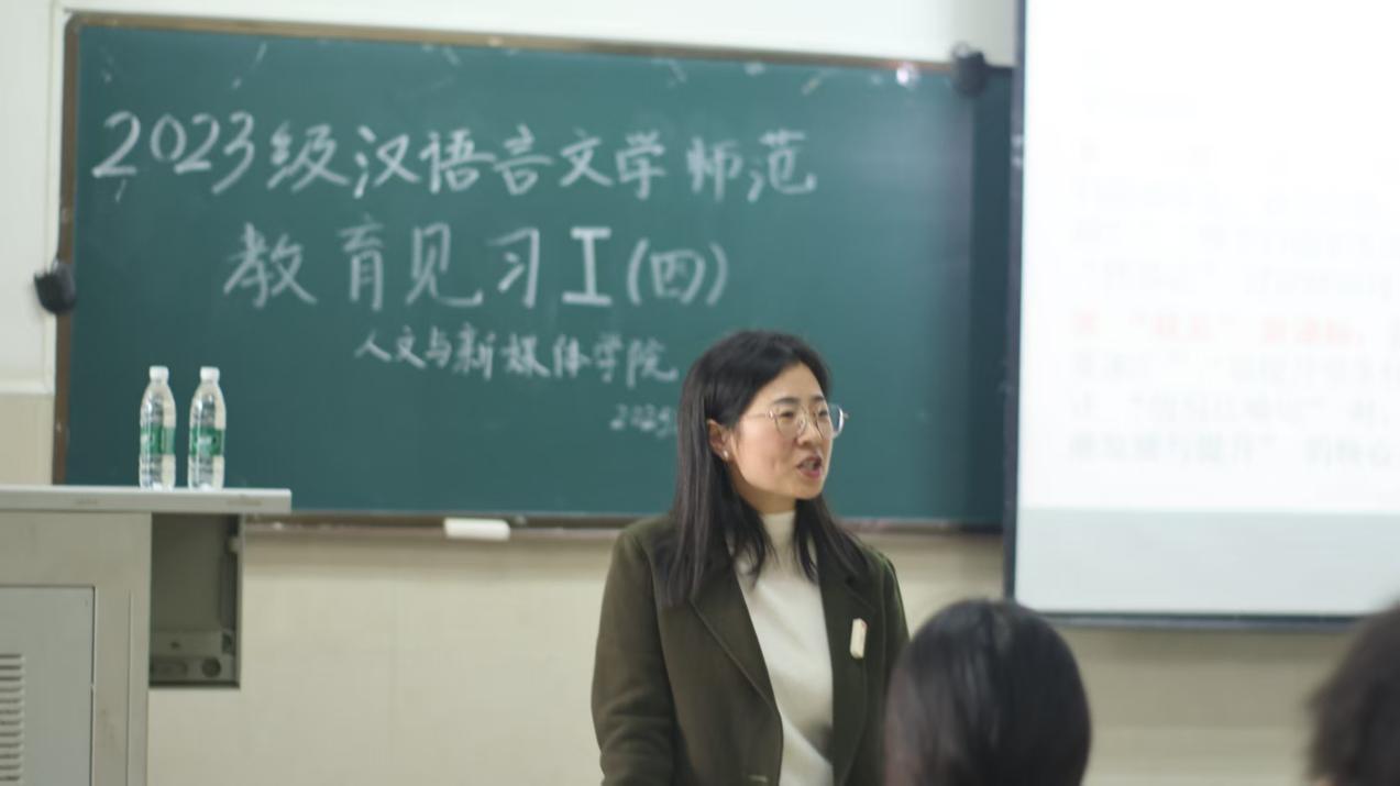 (通讯员彭迪)为夯实师范生教育教学基本功,提升教学技能,我们于2025年10月31日下午在东校区12教102举行了2023级中文师范专业教育见习第四次讲座。本次活动特邀湖北省江陵中学高级教师马素华,作题为《从“教课文”到“育素养”:新课标背景下〈劝学〉的深度备课策略》的专题分享。讲座由章芳老师主持,张丽老师、周霜老师及2023级全体中文师范生参加。