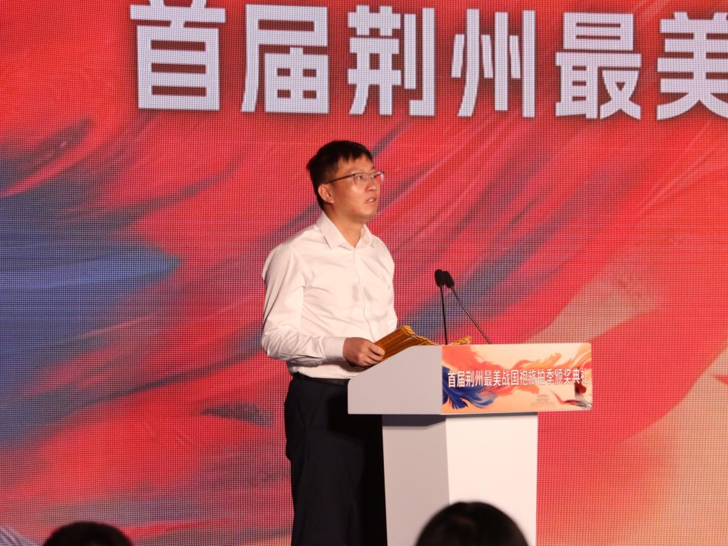 学院李征宇副院长受邀担任本次战国袍旅拍季颁奖典礼的开奖嘉宾。在揭晓“荆州最美战国袍”大奖之前,他表达了对此次活动的文化意义的肯定:“这不仅是对传统文化的保护性传承,更是一次创新性转化,以‘衣冠’为媒,为荆州文旅融合发展注入了独特的文化符号与情感记忆,这份意义远超一场评选,是荆州文化自信的生动表达。”同时也鼓励现场参与人员和学生沉浸式参与,去触摸、去欣赏楚人的浪漫想象和时代的审美风骨。