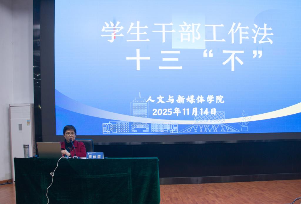 本次讲座特邀威客电竞副研究员雷体翠老师担任主讲。雷老师围绕学生干部的角色定位与核心能力,结合39个典型案例,以《学生干部工作法十三“不”》为题,从“服务优先,不计较得失”“管理自己,不随波逐流”等展开讲解,内容翔实,贴近实际。