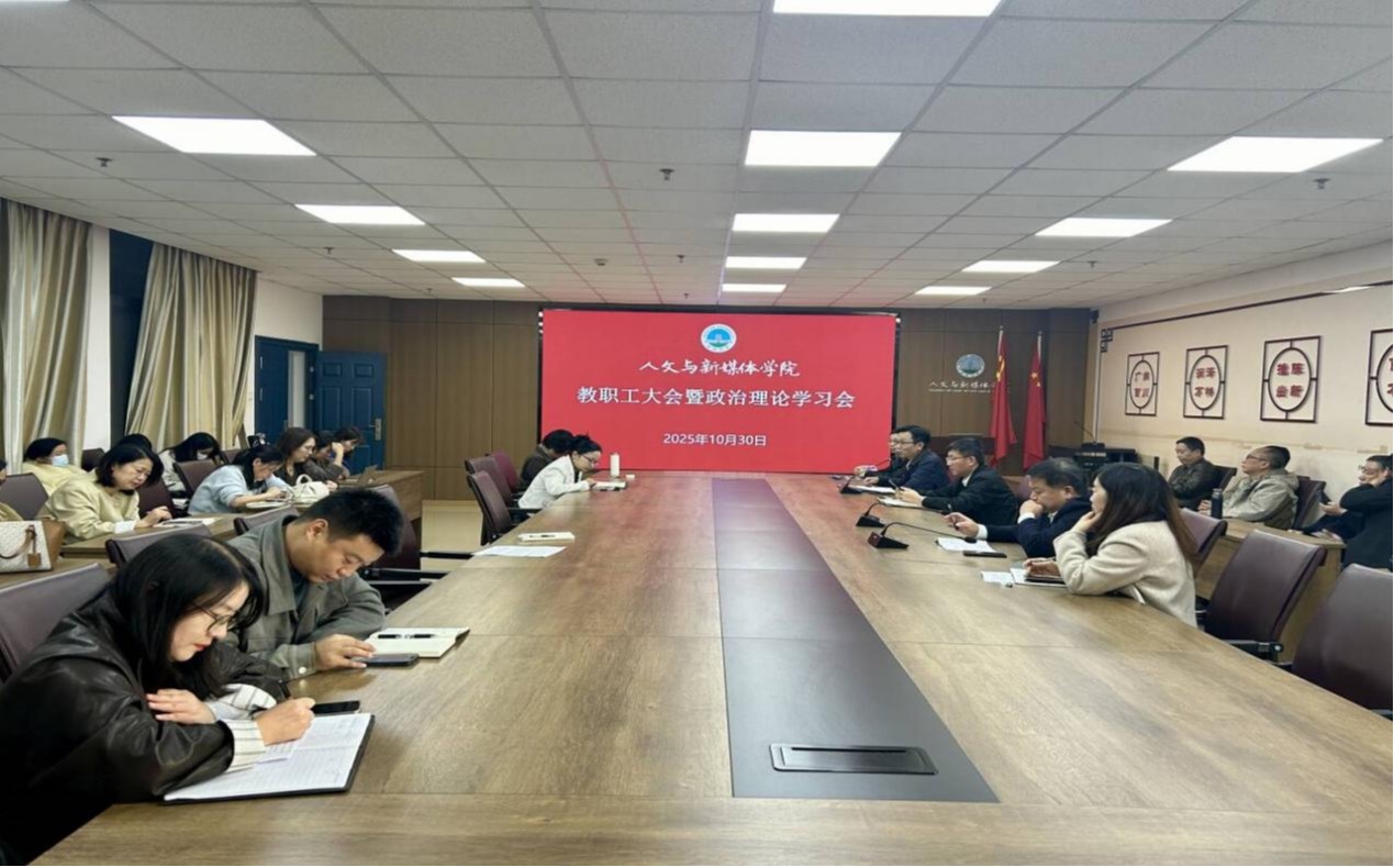 (通讯员 田华蓉)10月30日下午,学院在文科楼705会议室召开10月份教职工大会暨政治理论学习会,通报本月相关工作,安排下一阶段任务。会议由院党委书记李波主持。