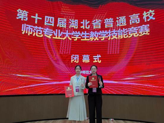 2025年11月8日,第十四届湖北省普通高校师范专业大学生教学技能竞赛决赛在华中师范大学圆满落幕。我们中文(师范)12201班李淑琦(指导老师:徐思雨、袁飘)获得高中语文组一等奖,中文(师范)12201班汪楚怡(指导老师:章芳、徐思雨)获得初中语文组二等奖。此外,历史系张诗语(指导老师:杨蓉、卢川)在初赛中获得高中历史组三等奖。